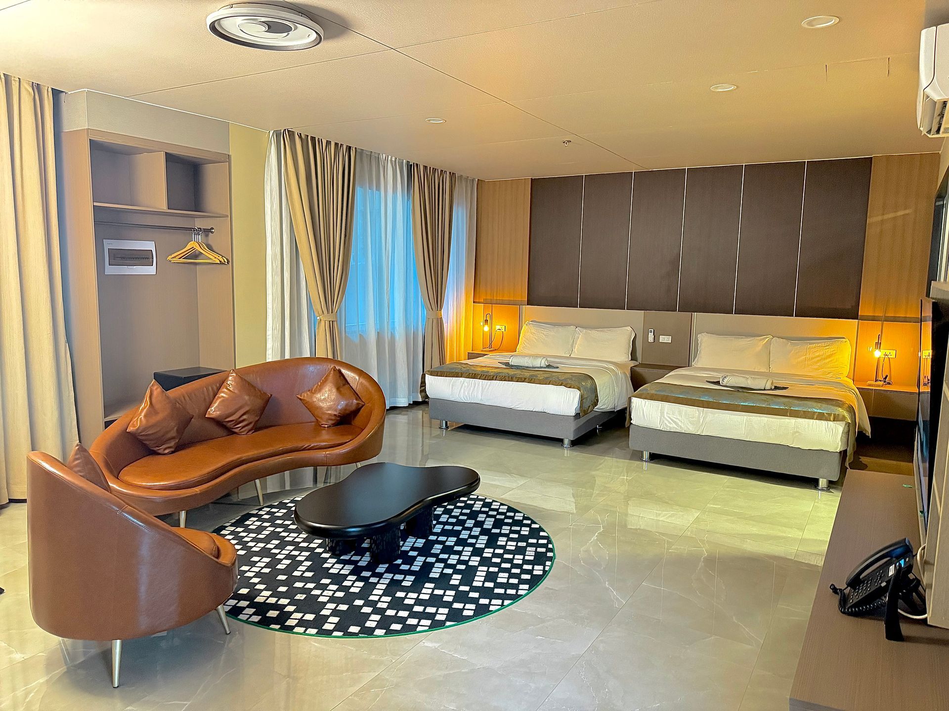 The Mini Executive Suite offers added space and sophistication, featuring two queen-size beds and a comfortable living area ideal for relaxing or entertaining. Perfect for business or family stays, the suite is equipped with a hot and cold shower, complete bathroom amenities, a 50-inch smart TV, air-conditioning, mini bar, coffee and tea percolator, and an in-room telephone. With its modern design and premium comfort, this suite provides a stylish retreat just minutes away from Manila’s international and domestic airports—perfect for discerning travelers in transit or on business.