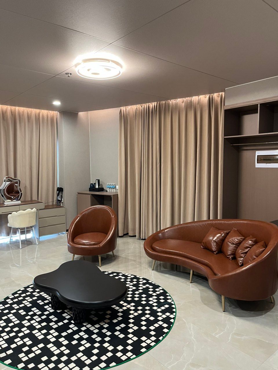 The Executive Sky Suite offers added space and sophistication, featuring two queen-size beds and a comfortable living area ideal for relaxing or entertaining. Perfect for business or family stays, the suite is equipped with a hot and cold shower, complete bathroom amenities, a 50-inch smart TV, air-conditioning, mini bar, coffee and tea percolator, and an in-room telephone. With its modern design and premium comfort, this suite provides a stylish retreat just minutes away from Manila’s international and domestic airports—perfect for discerning travelers in transit or on business.